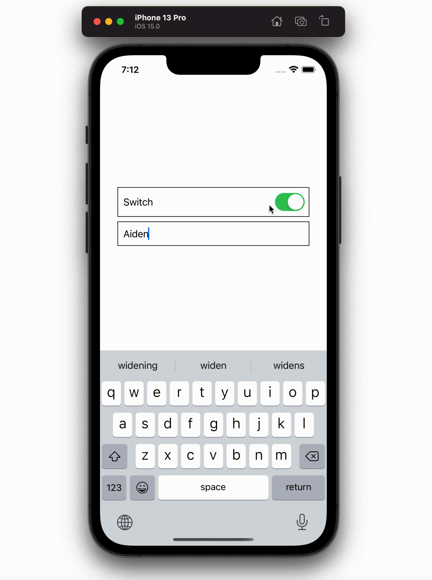 import SwiftUI struct ContentView: View { @AppStorage("isOn") var isOn: Bool = UserDefaults.standard.bool(forKey: "isOn") @AppStorage("text") var text: String = UserDefaults.standard.string(forKey: "text") ?? "" var body: some View { VStack { Toggle("Switch", isOn: $isOn) .padding(EdgeInsets(top: 10, leading: 10, bottom: 10, trailing: 10)) .border(Color.black, width: 1) .frame(width: UIScreen.main.bounds.width - 60) TextField("Text", text: $text) .padding(EdgeInsets(top: 10, leading: 10, bottom: 10, trailing: 10)) .border(Color.black, width: 1) .frame(width: UIScreen.main.bounds.width - 60) } } }