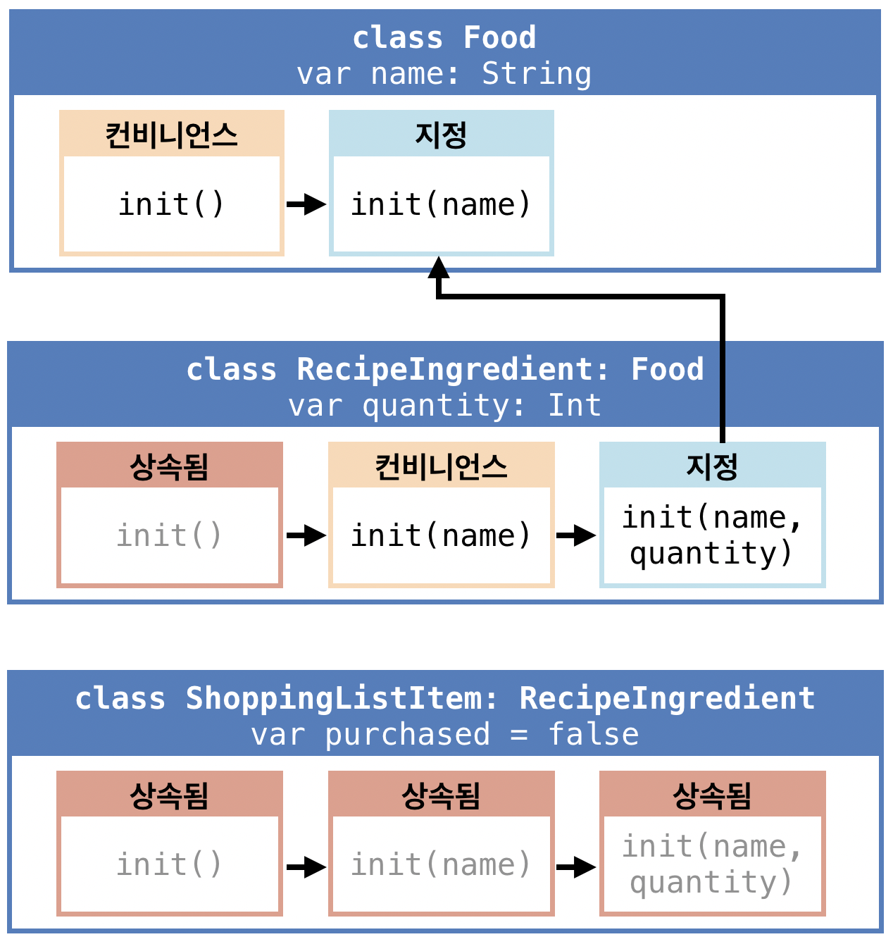 2. 자식 Class가 부모 Class의 Designated Initializer를 모두 구현(상속 또는 Override) 한 경우 Convenience Initializer를 상속받습니다.그림으로 한번 볼까요?